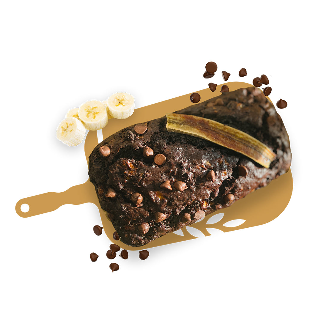 • Enjoy your warm, moist, and bursting-with-chocolate banana  loaf bite.